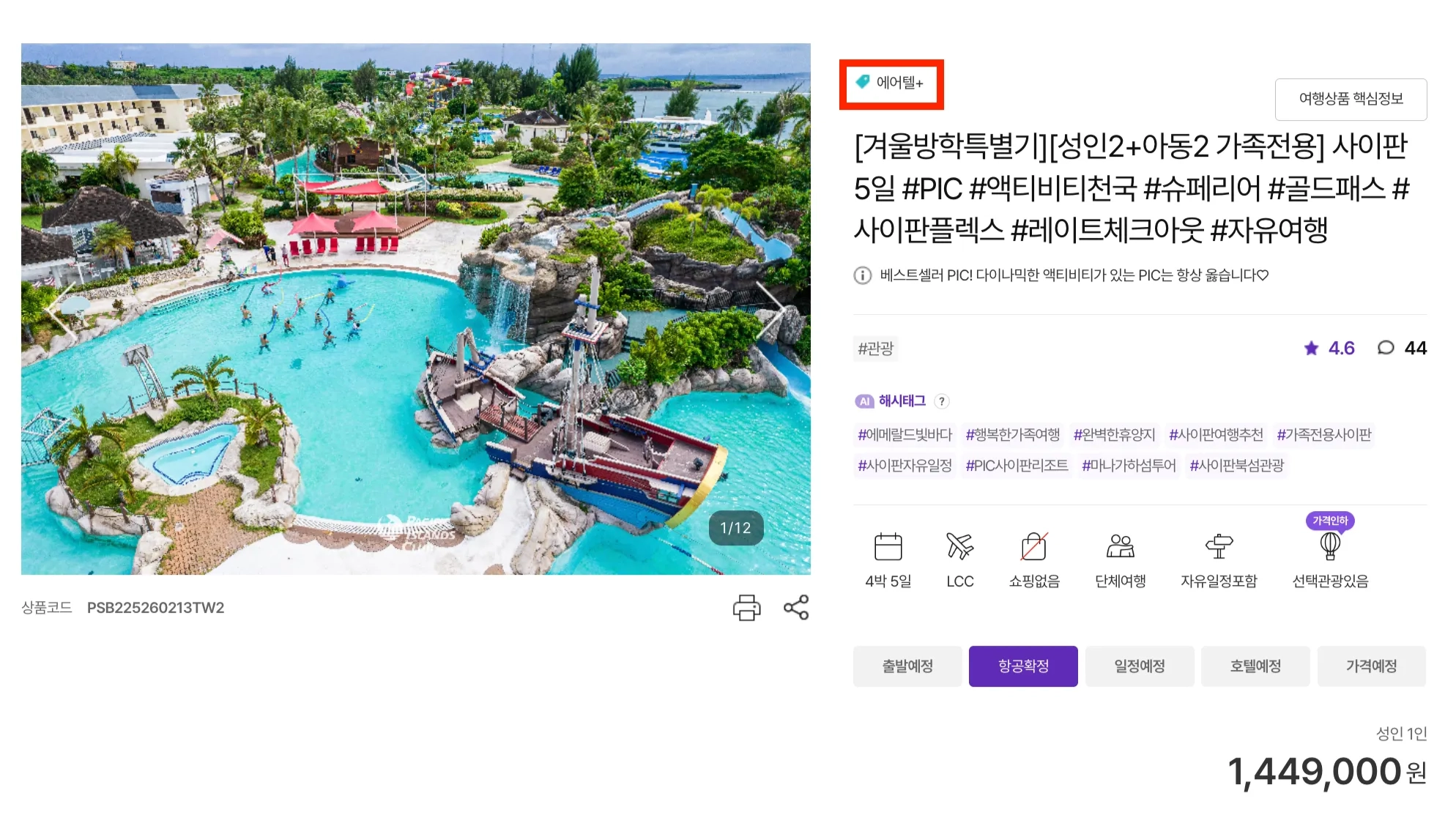 대상 카테고리: 에어텔 / 현지투어+ / 패키지