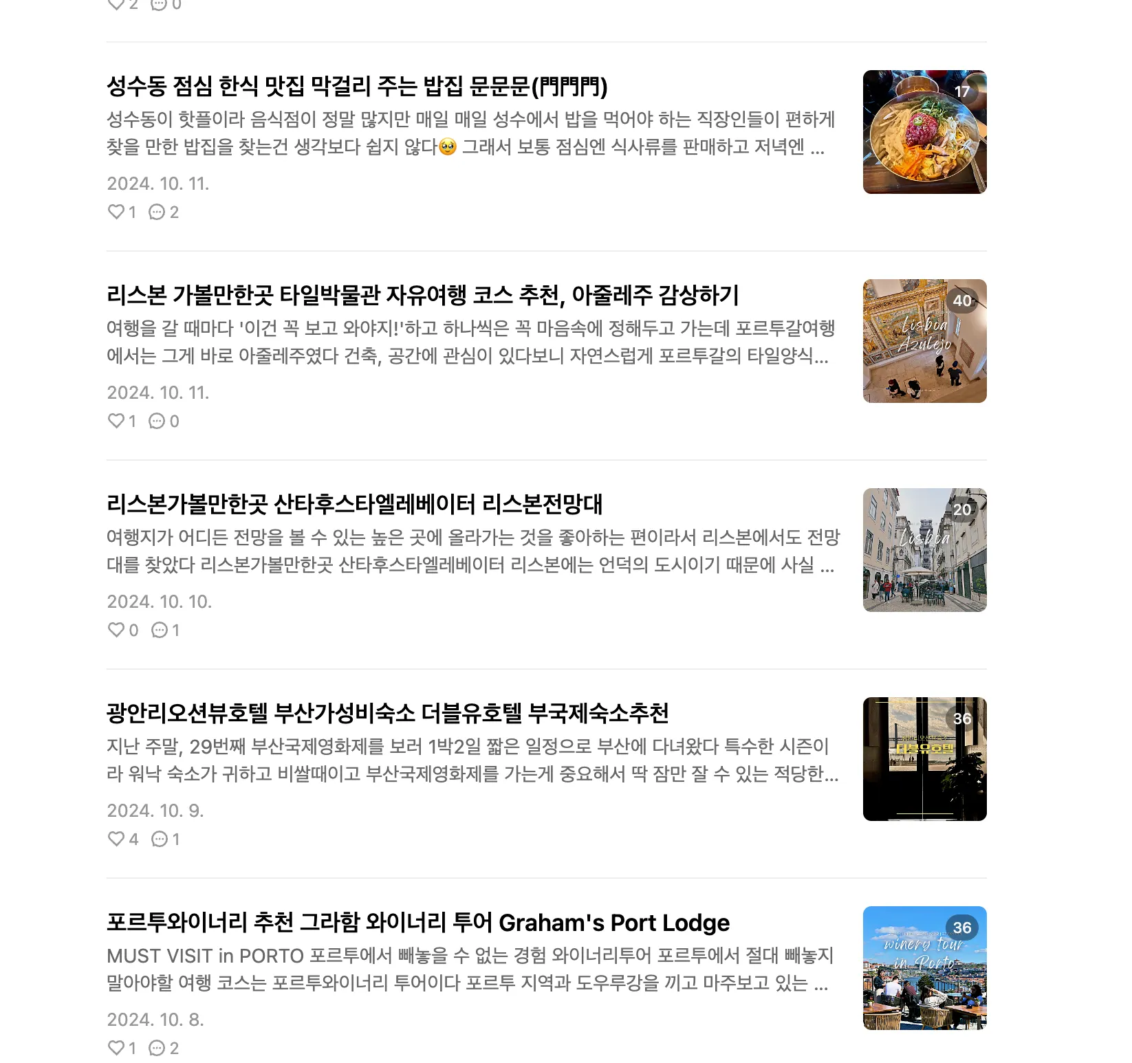 따라서 다음날 발행하는 건 오히려 “리스본 여행” 이라는 키워드로 발행하시는 것 처럼 둘의 키워드를 겹치지 않게 발행하셔야 합니다.