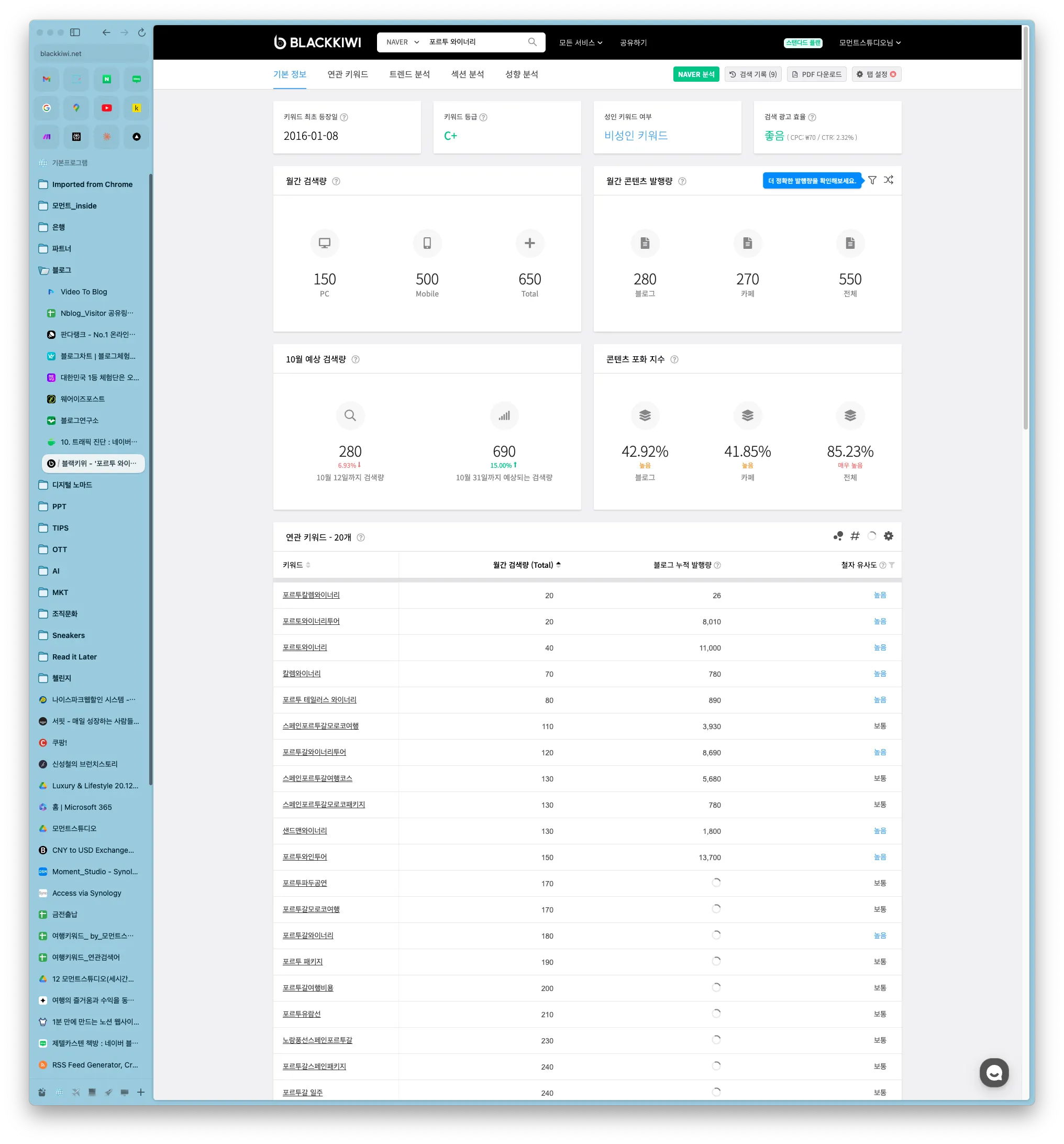 예를 들어 블랙키위에 포르투 와이너리를 검색하시고, 검색량과 비교해보신뒤에 연관검색어를 더 찾아보세요. 그나마 메인키워드로 쓸 수 있는게 “포르투 와인” 과 “포르투 와이너리 투어” 라는 키워드가 있네요. 이 키워드로 쓸 수 있게 와이너리를 갔지만 “포르투 와인 추천 그라함 와이너리 투어” 나 “포르투 와이너리 투어 추천 선물용으로 좋은 그라함 와인” 과 같이 쓸 수 있겠죠.